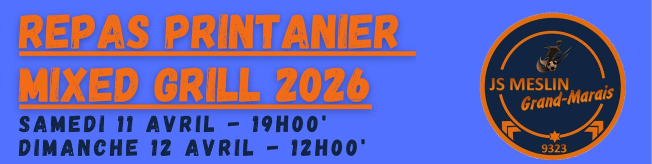 Comme chaque année, le comité de la JS Meslin GM a le plaisir de vous inviter à son repas Printanier.